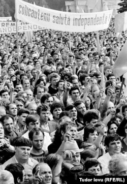 În primăvara lui 1990, s-au ținut primele alegeri parlamentare libere. Forța politică câștigătoare a fost Frontul Popular, care se pronunțase pentru independența Moldovei, pentru proclamarea limbii române ca limbă oficială și pentru introducerea alfabetului latin.