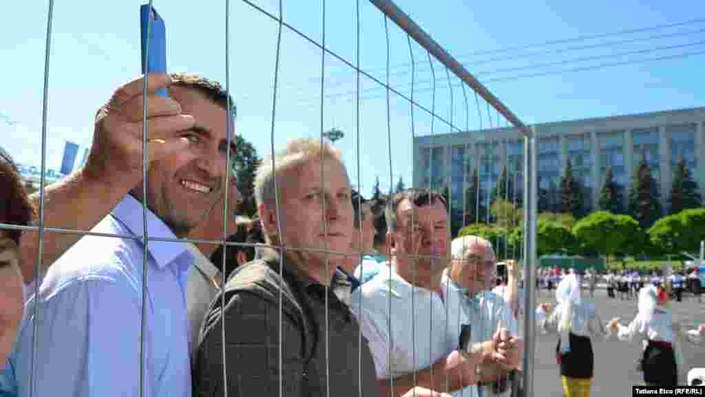 Cetăţenii veniţi să urmărească evenimentele din centrul Chişinăului au putut-o face doar prin gardul de sârmă.
