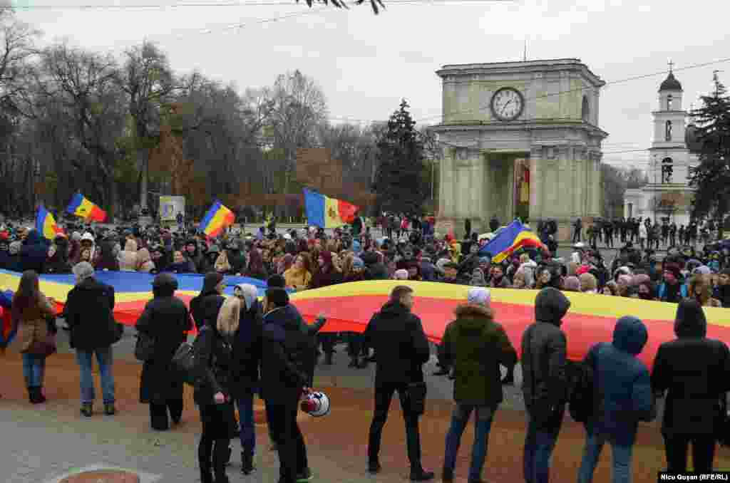 Câteva sute de oameni au protestat în fața clădirii Guvernului împotriva rezultatelor și organizării deficiente a alegerilor prezidențiale. Ei au cerut organizarea unui nou scrutin și au afirmat că procesul de votare a fost fraudat. După protestul din fața Guvernului, grupul de manifestanți au plecat la Comisia Electorală Centrală, unde au cerut demisia membrilor CEC. Potrivit rezultatelor finale, alegerile prezidențiale au fost câștigate de Igor Dodon, candidatul PSRM.