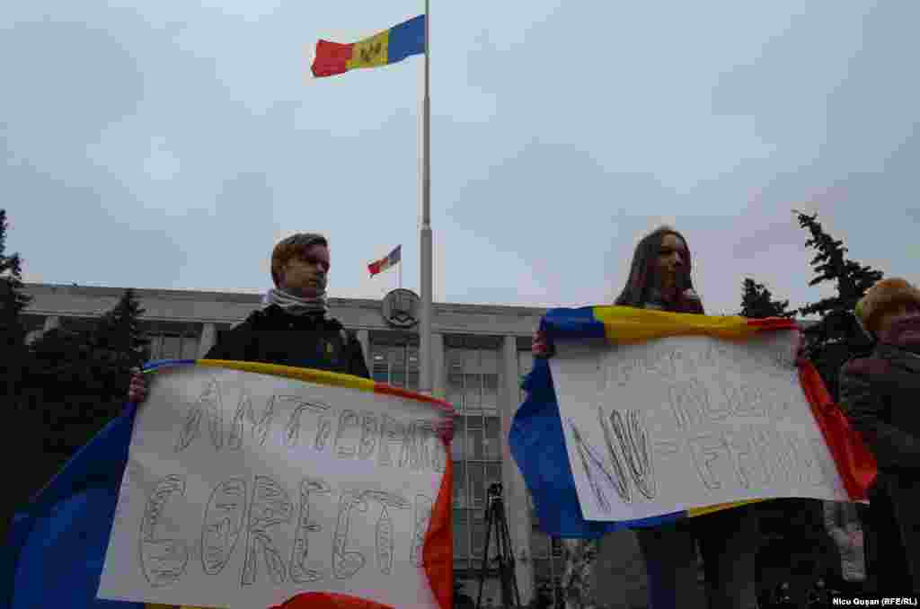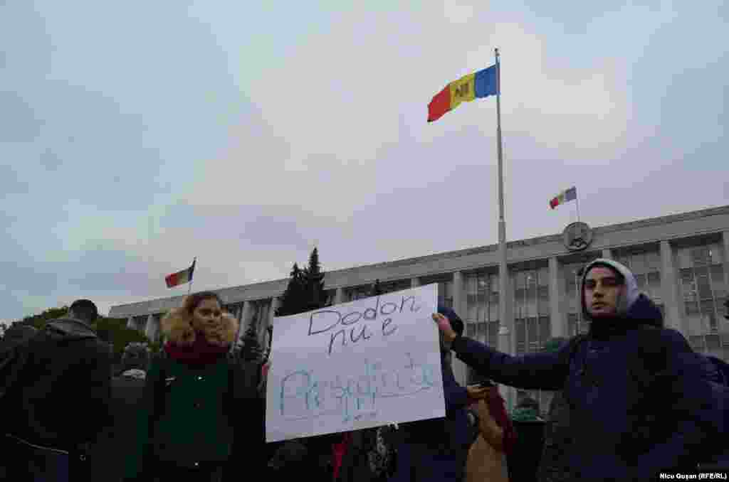 Câteva sute de oameni au protestat în fața clădirii Guvernului împotriva rezultatelor și organizării deficiente a alegerilor prezidențiale. Ei au cerut organizarea unui nou scrutin și au afirmat că procesul de votare a fost fraudat. După protestul din fața Guvernului, grupul de manifestanți au plecat la Comisia Electorală Centrală, unde au cerut demisia membrilor CEC. Potrivit rezultatelor finale, alegerile prezidențiale au fost câștigate de Igor Dodon, candidatul PSRM.