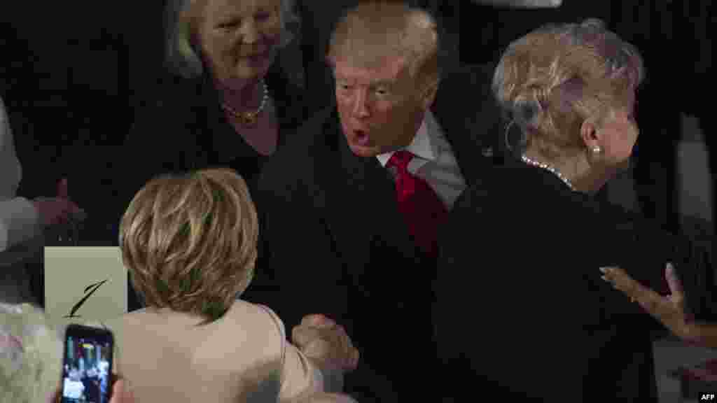Donald Trump o salută pe Hillary Clinton.