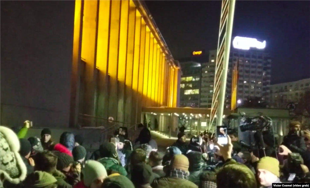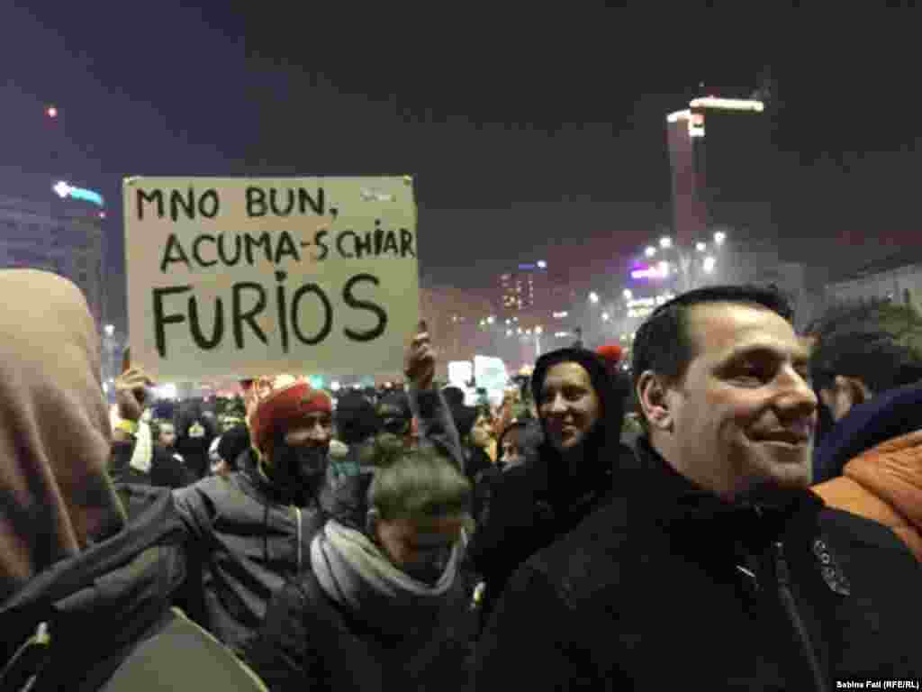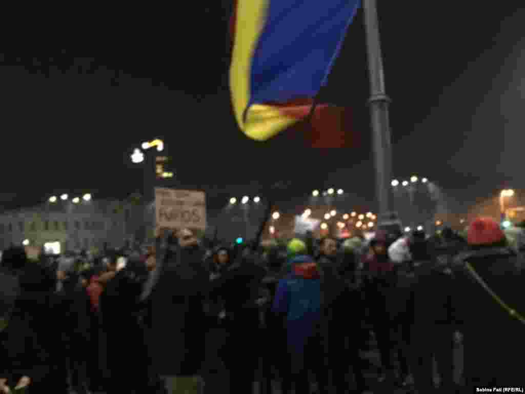 Imagini de la marele protest desfășurat în curul nopții în Piața Victoriei, la București, împotriva aprobării proiectelor de lege controversate privitoare la grațiere și modificarea prin ordonanță de urgență a Codurilor penale.