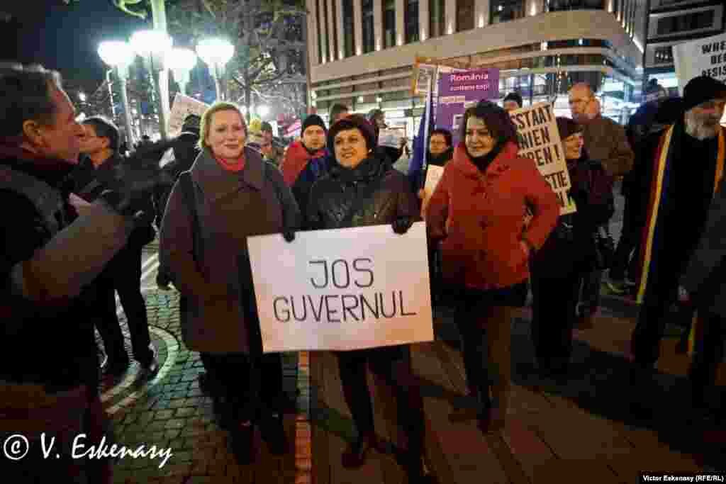 Cîteva zeci de români din Frankfurt și zona înconjurătoare și-au manifestat astăzi cu seriozitate și bun umor solidaritatea cu doleanțele sutelor de mii de protestatari din România.