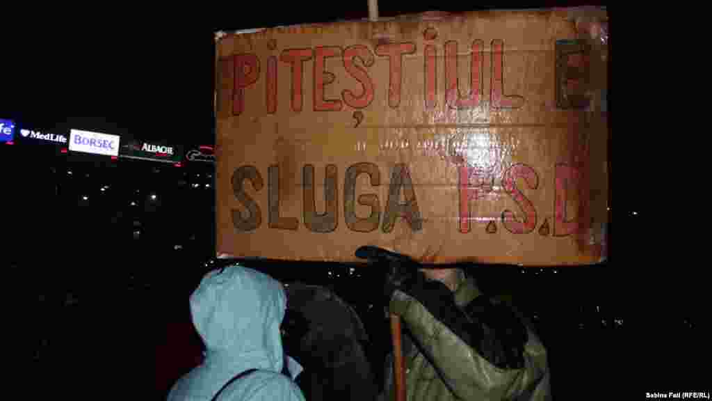În a 20-a zi de proteste, în jur de 3000 de oameni, după estimări ale agențiilor de presă de la București, s-au strâns în fața sediului guvernului în Piața Victoriei și au continuat să ceară demisia cabinetului Grindeanu, în ciuda vântului și a ploii. În paralel, în fața Palatului Cotroceni, mai puțin de 50 de persoane au strigat, ca și în zilele precedente, lozinci anti-prezidențiale. Un foto-reportaj de Sabina Fati.