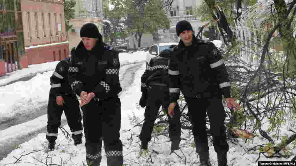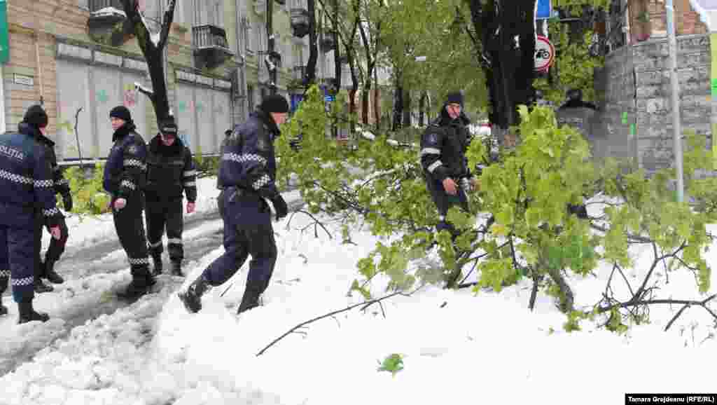 Operaţiunea de deszăpezire în zona centrală a Chişinăului.
