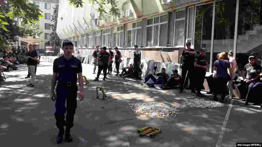 Zeci de poliţişti formează un cordon viu între cele două demonstraţii. Alte zeci sunt în poziţie de repaus în jurul clădirii parlamentului.