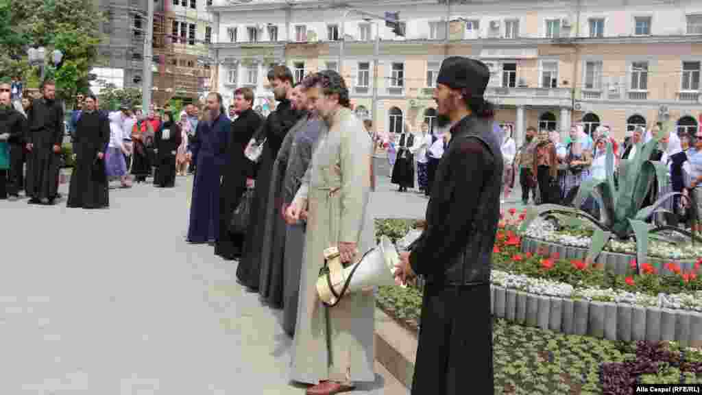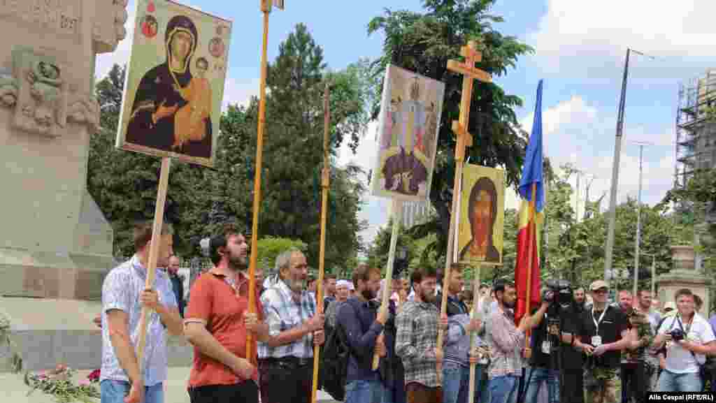 Contramanifestanți în frunte cu preotul Anatol Cibric