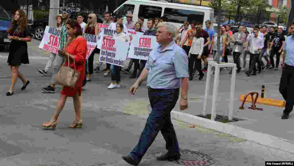 În timp ce Curtea Constituţională examina sesizarea liberalilor ce se referă la statutul limbii ruse, limbă de comunicare între națiuni, membri şi simpatizanţi al Partidului Socialiştilor se pronunţau în stradă pentru păstrarea acestei formule în legislaţie.
