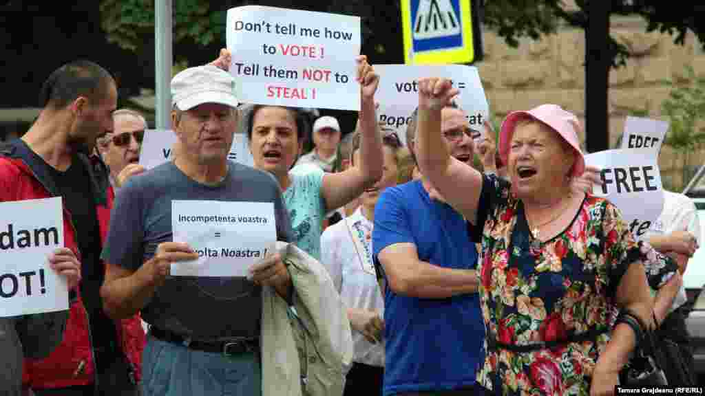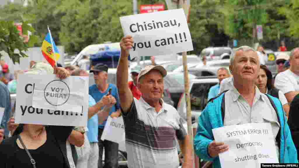 În timp ce magistraţii instanţei supreme examinează cu uşile închise dosarul alegerilor din Chişinău, protestatarii scandează în faţa CSJ. Fotografii realizate în jurul orei 16.00.