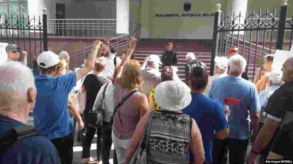 Zeci de simpatizanți ai partidelor dreapta PPDA, PAS şi PLDM au protestat în faţa Parlamentului de la Chişinău cerând deputaţilor să îndeplinească cele trei revendicări din rezoluția adoptată la amplul protest de duminică: recunoașterea alegerilor locale, revenirea la sistemul de vot proporțional și deschiderea unei anchete penale împotriva judecătorilor care au decis anularea scrutinului. Deputaţii din fracţiunea PLDM au încercat să avanseze în plenul parlamentului o discuţie pe marginea crizei create urmare a invalidării scrutinului, dar iniţiativa a fost respinsă de majoritatea dominată de democraţi.