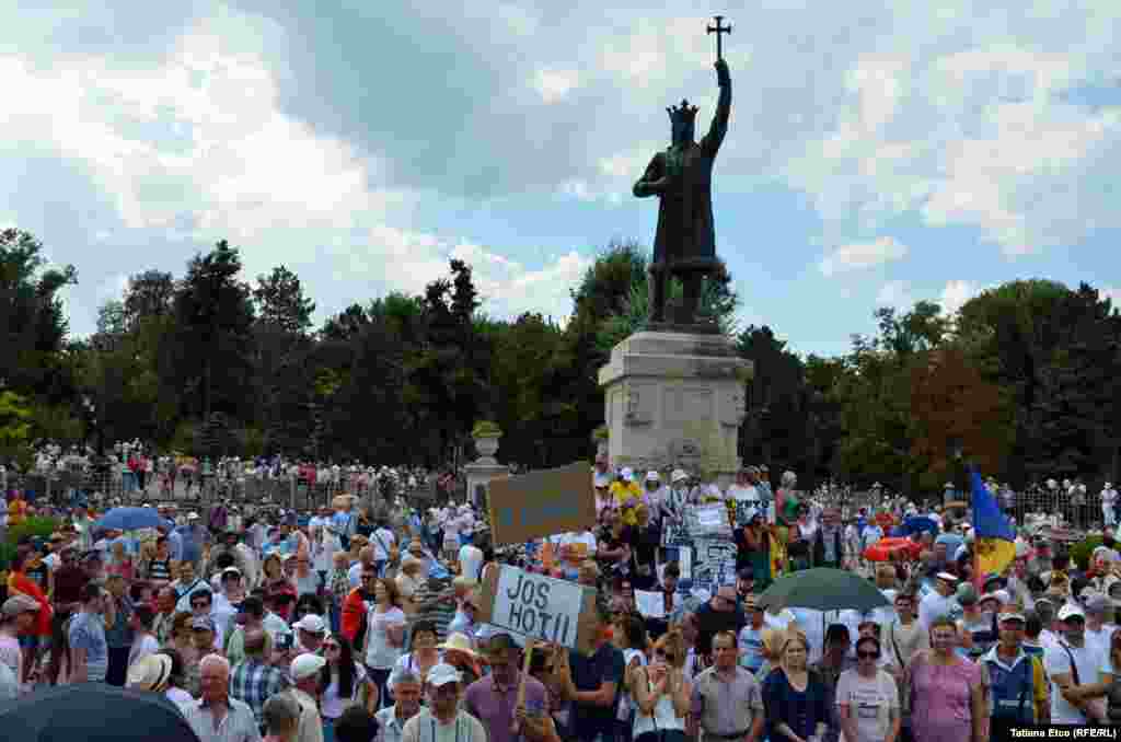 Simpatizanţii opoziţiei pro-europene s-au adunat lângă monumentul lui Ştefan cel Mare în timp ce Piaţa Marii Adunări Naţionale era ocupată de tabăra lui Ilan Şor. Unii dintre ei s-au certat cu cei din gruparea adversă sau cu poliţiştii ce formau un zid viu între manifestanţi.