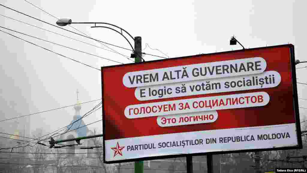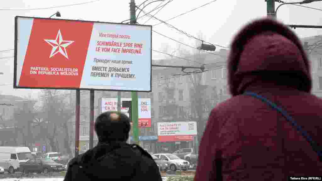 Până acum şi-au scos la vedere "ofertele electorale" PSRM, PDM, Partidul Şor, blocul electoral ACUM şi PCRM. Fotoreportaj din zona centrală a oraşului