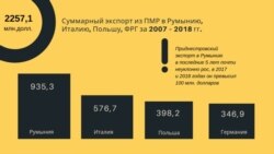 Андрей Моспанов: «За последние 12 лет с 2007 по 2018 год мы поставили в эти четыре страны, напомню, на их долю приходится 90% всего приднестровского экспорта в ЕС, товаров на 2 млрд 257 млн долларов. Из этой суммы почти миллиард пришелся на Румынию. По большому счету Румыния сейчас является для Приднестровья, при всех идеологических расхождениях, экономическим окном в Европейский Союз. Это главная европейская экономика, с которой мы работаем. На втором месте Италия».