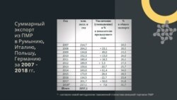 В течение последних пяти лет, добавляет Моспанов, приднестровский экспорт в Румынию неуклонно растет, и ежегодно превышает 100 миллионов долларов. Тирасполськие эксперты отмечают также, что за последние 10 лет приднестровская экономика претерпела серьезные изменения.