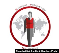 În bilanţul prezentat de către această organizaţie (pe 14 decembrie) se precizează că 387 de jurnalişti se află în detenţie, 54 au fost răpiţi şi 4 au dispărut. (60 la sută dintre cei încarceraţi se află în penitenciarele din China, 117, din Arabia Saudită, 34, din Egipt 30, din Vietnam, 28, şi din Siria, 27.)