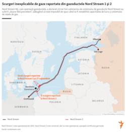 Scurgeri inexplicabile de gaze raportate din gazoductele Nord Stream 1 şi 2