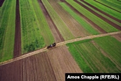 Крестьяне едут вдоль поля у города Меркуря-Чука. Сегодня почти треть румын заняты в сельском хозяйстве, но в последние годы власти делают упор на промышленность.