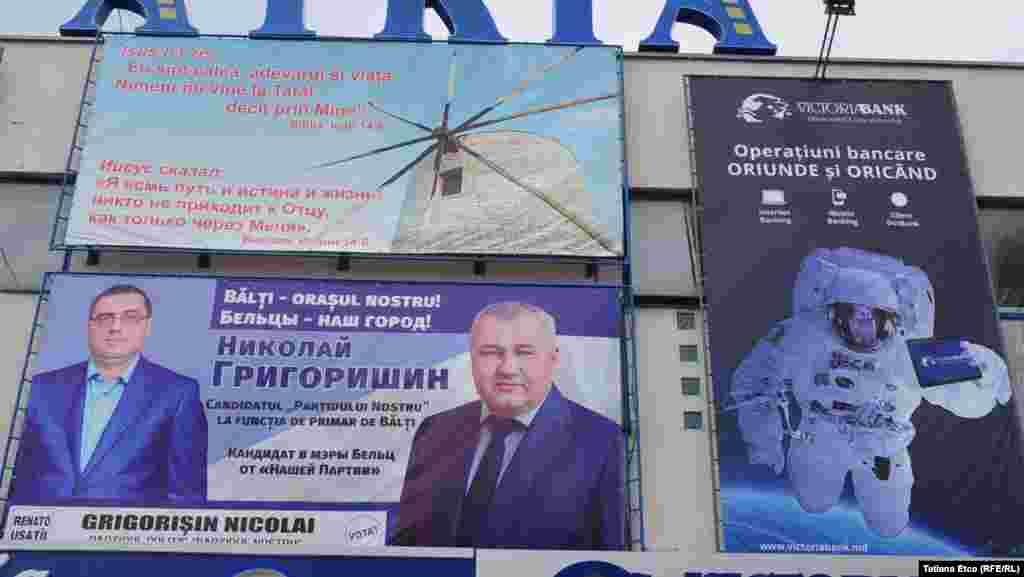 Orașul Bălți, la ora aceasta împodobit cu afișele și portretele candiaților la funcția de primar în alegerile de la 20 mai.