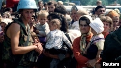 Un comandant al UNPROFOR își amintește că refugiații din Potocari „erau panicați, erau speriați, se împingeau în soldați, soldații mei, soldații ONU care încercau să îi calmeze”.