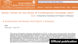Raportul alcătuit de cercetătorii Centrului Kantor al Universității din Tel Aviv constată că anul trecut au fost uciși în atacuri antisemite cei mai mulți evrei din ultimele decenii, anume 13 – marea majoritate în atacul din 27 octombrie, de la o sinagogă din Pittsburgh, în Statele Unite, unde au fost omorâți 11 oameni. În total, în 2018 au fost înregistrate 400 de atacuri anti-semite, o creștere de 13% față de anul precedent.