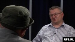 Europa Liberă: Da. Eu cred că aici o să punem punct și virgulă, pentru că o să continuăm această discuție. Dacă vreți să-mi dați cartea s-o arăt și eu încă o dată la cameră. Uitați-vă acest titlu – „Democrația sub asediu”, dar noi știm vechea zicală: „Ce nu ne omoară, ne întărește”, ori democrația, așa cum arată toată lumea, este greu de omorât, doar poate cu planeta împreună, pentru că și-a demonstrat superioritatea, pentru că știe să se redescopere, are soluții dificile, pentru că soluțiile cele mai simple le oferă dictaturile, puciștii, militarii vin și rad totul și o iau de la zero. Democrația are soluții dificile, dar pe termen lung, așa că am vorbit cu un om care crede în democrație.