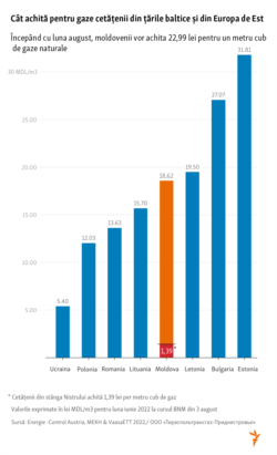 Începând cu luna august, moldovenii vor achita cu peste patru lei mai mult pentru un metru cub de gaze naturale.