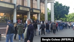 Potrivit corespondentului Europei Libere, coada se întinde de la Palatul Republicii (str. Maria Cebotari) și până în jos, în fața Ministerului Justiției și a Casei Sindicatelor (str. „31 august”).