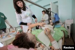 O femeie la spitalul din Izium, în estul Ucrainei.