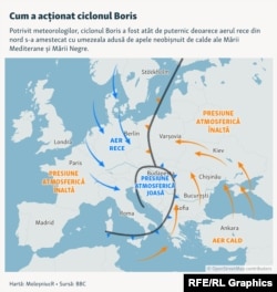 Inundațiile vin după cea mai fierbinte vară din Europa, înregistrată vreodată pe Pământ. Potrivit meteorologului englez Scott Duncan, Ciclonul Boris a aspirat aer rece din Antarctica înainte de a se amesteca cu umiditatea fierbinte din Mediterană și Marea Neagră, provocând furtuni puternice.