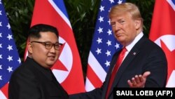 Donald Trump: „Vedeți, face și el ceea ce a văzut că se face. Dar, de fapt, eu trebuie să mă iau după ziua de azi, după ziua de ieri și ultimele vreo două săptămâni, pentru că anume acum a început această chestiune (a convorbirilor). Repet, fără retorică și fără sancțiuni. Sancțiunile au fost foarte importante, sancțiunile vor rămâne în vigoare până când vom vedea că acest lucru (denuclearizarea) se va întâmpla. Vedem deja că se va întâmpla, dar sancțiunile vor rămâne până când începem într-adevăr să demontăm sau demontăm armele atomice.”