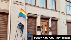 Grupul a arborat drapele LGBT în culorile curcubeului pe clădirile FSB, administrației prezidențiale, Curții Supreme, pe o secție de poliție dintr-un sector al Moscovei și pe Ministerul Culturii.