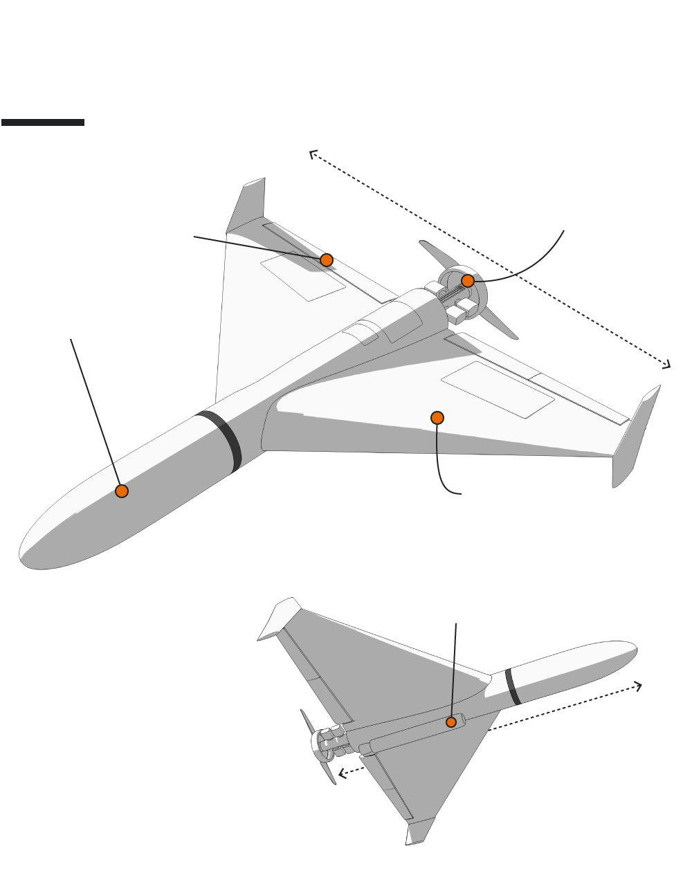 O dronă kamikaze de fabricație iraniană, importată de Rusia pentru a fi folosită în invazia sa din Ucraina, redenumită ca „Geran-2” sau Geranium-2.