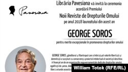 George Soros, a fost distins vineri, la București, cu premiul publicaţiei Noua Revistă de Drepturile Omului. Festivitatea decernării premiului a avut loc la sediul librăriei „Pavesiana”.