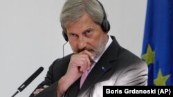 Корреспондент Свободной Европы в Брюсселе Рихард Йозвяк обсуждает решение ЕС о замораживании финансовой помощи ЕС и сокращении дотаций с еврокомиссаром по вопросам расширения и политики добрососедства Йоханнесом Ханом.