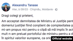 Ministrul justiției Alexandru Tănase și-a anunțat duminică intenția de a demisiona pentru că încrederea publicului în integritatea sa ar putea fi subminată, ceea ce nu-i va permite să facă reformele dorite în justiție. Tănase a făcut anunțul pe Facebook. Este aşteptată acum demisia oficială, iar noi discutăm subiectul cu analistul politic Corneliu Ciurea.