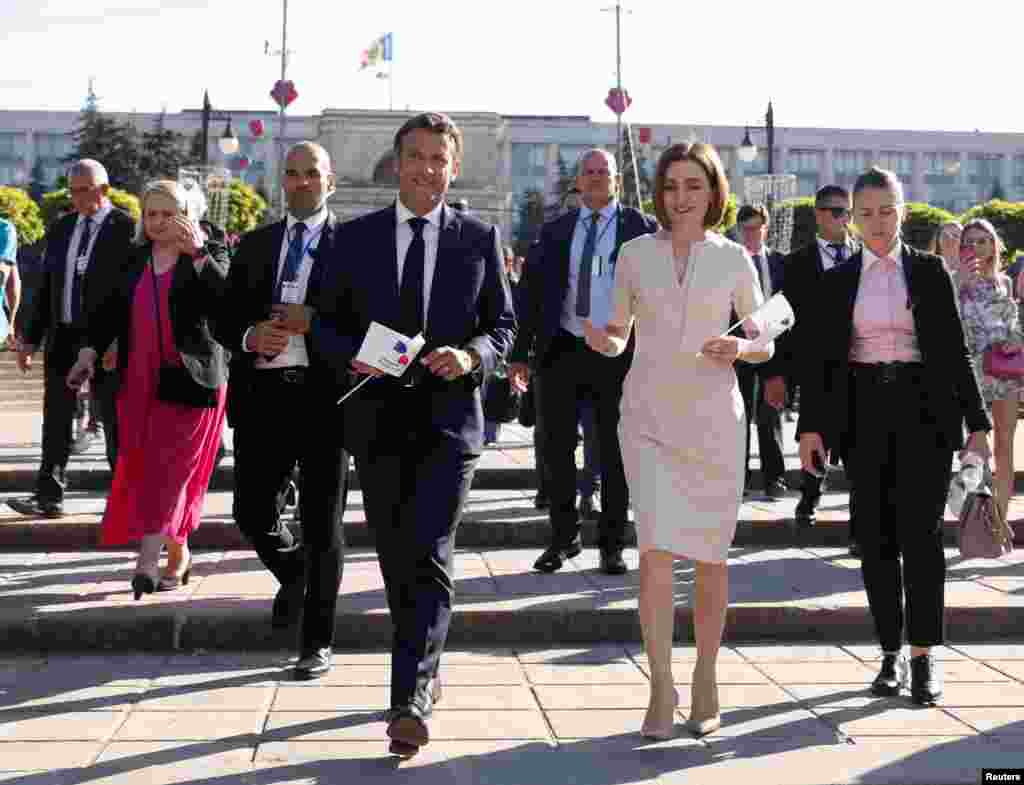 Macron și Sandu, la pas prin centrul Chișinăului