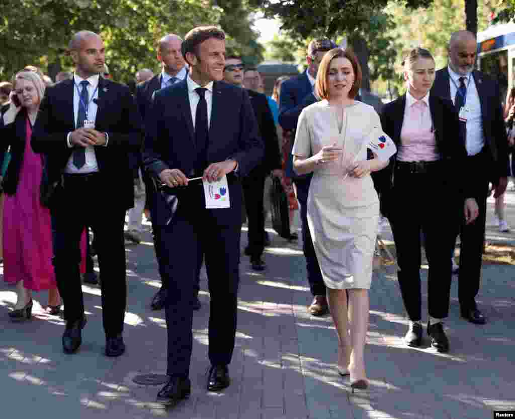 Președintele francez Emmanuel Macron s-a aflat miercuri, 15 iunie, la Chișinău, după o vizită în România și înainte de a merge mai departe, la Kiev, în Ucraina. Emmanuel Macron a discutat cu președinta Maia Sandu despre relațiile bilaterale și aderarea Republicii Moldova la Uniunea Europeană, iar după întrevedere cei doi lideri s-au plimbat pe jos prin centrul Chișinăului și au intrat într-o cafenea.