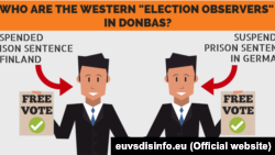 Megafoanele de categorie grea ale dezinformării în estul Ucrainei erau amplasate pe teren în Donbas, Ucraina, în aceeași zi. Încercînd să legitimeze alegerile nerecunosute, niște așa-ziși „observatori electorali internaționali” i-au lăudat pe separatiști ca organizatori de alegeri.