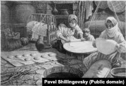 Acest desene înfățișează femei armene care întind aluatul pentru a-l lipi pe pereții unui cuptor tonir. Este una dintre zecile de schițe realizate de artistul Pavel Șilingovski în Armenia sovietică în urmă cu aproximativ 100 de ani.