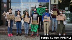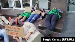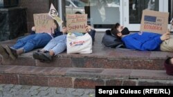 Un grup de activiști în domeniul mediului a protest la Chișinău în fața sediului Ministerului Agriculturii, Dezvoltării Regionale și Mediului. Tinerii au stat culcați pe scările instituției preț de jumătate de oră, prefăcându-se morți.