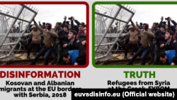 În 14 mai, agenția de știri News Front a publicat un articol însoțit de o imagine a unor „migranți kosovari și albanezi luînd cu asalt granițele UE” venind din Serbia. Articolul a fost publicat pe site-urile englez, german și spaniol al agenției News Front.