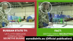Într-o aparentă încercare de a produce dovezi în sprijinul acestei afirmații, televiziunea rusă de stat Pervîi Kanal, a decis să facă un portret celei de-a 77-a brigăzi a armatei britanice, care apără Marea Britanie de diversele amenințări hibride din cazarma sa de la Hermitage, Berkshire.