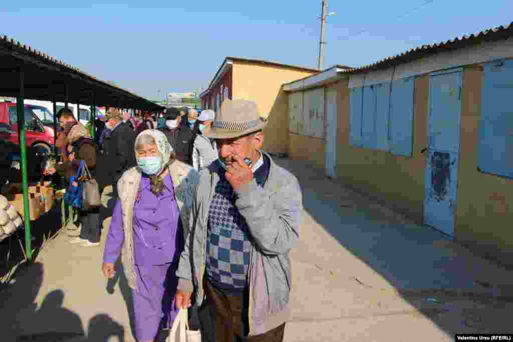 La piața din Cărpineni, Hâncești, oamenii au venit după mâncare, nu sunt scumpi la vorbă și se protejează care și cum poate.