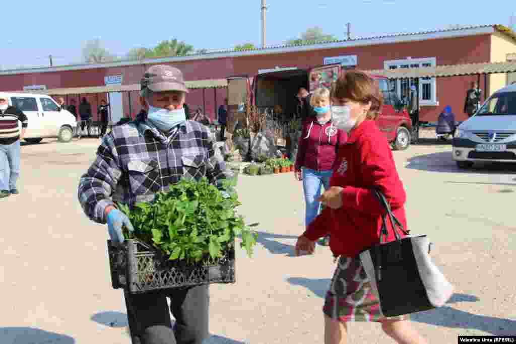 La piața din Cărpineni, Hâncești, oamenii au venit după mâncare, nu sunt scumpi la vorbă și se protejează care și cum poate.