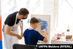 Pe Dumitru Grușcă din Fălești l-am cunoscut la un atelier de pictură unde venise împreună cu ambii copii. Fetița tocmai încerca să îl deseneze pe tata. Dumitru spune că își face timp ca să petreacă zilele libere alături de copii pentru că astfel își ajută soția să-și mai tragă sufletul, dar mai ales pentru că simte nevoia să participe cât mai mult la educația copiilor. El nu e de acord cu viziunea tradițională că femeile sunt responsabile de educație, iar bărbaților le revine obligația „de a aduce bani în casă”. O percepție greșită, spune Dumitru, și mai ales păguboasă pentru copiii: