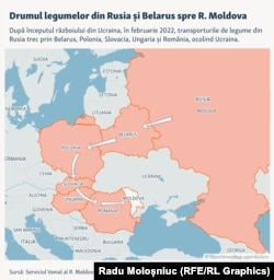 Drumul legumelor aduse din Rusia și din Belarus a devenit mai lung de când a început războiul în Ucraina. Potrivit Serviciului Vamal, pentru a ajunge în R. Moldova, acestea trec prin Polonia, Ungaria și România.