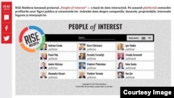 Cu câteva zile înainte de alegerile parlamentare, portalul RISE Moldova a lansat miercuri proiectul „People of interest”, în traducere „persoane de interes”, se subînțelege de interes public. Este vorba de o bază de date interactivă cu informații despre personalitățile care au fost subiectul unor anchete jurnalistice. În listă apar „încrengăturile” clientelare a 12 politicieni cărora li se vor adăuga și alte personalități, precizează RISE, inclusiv oameni de afaceri cu greutate, unii dintre ei implicați în afaceri cu bani publici.