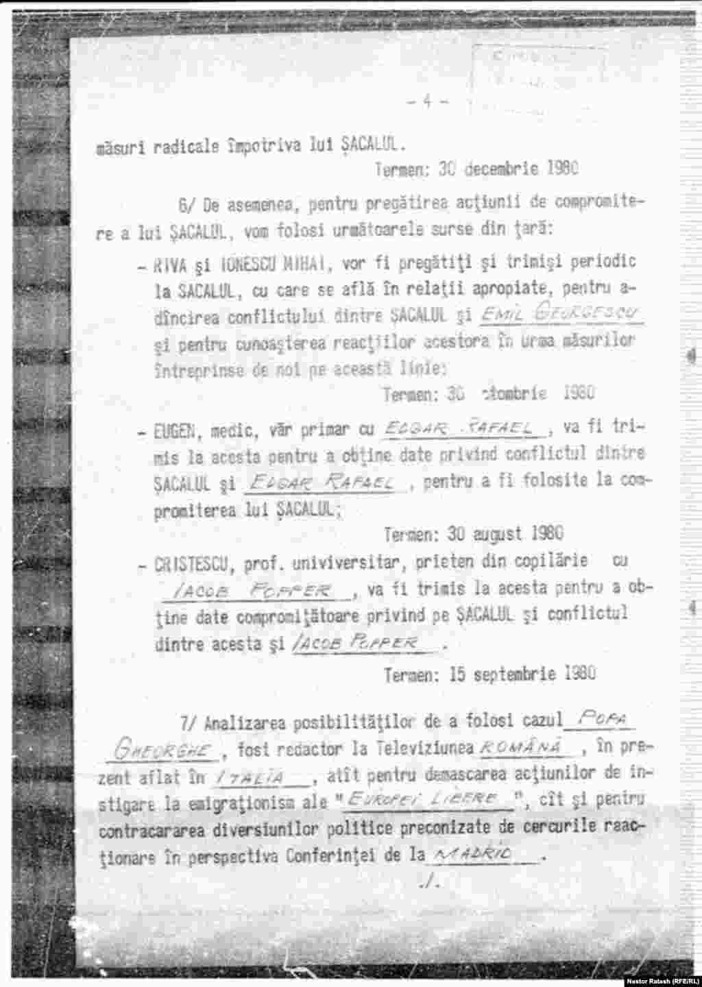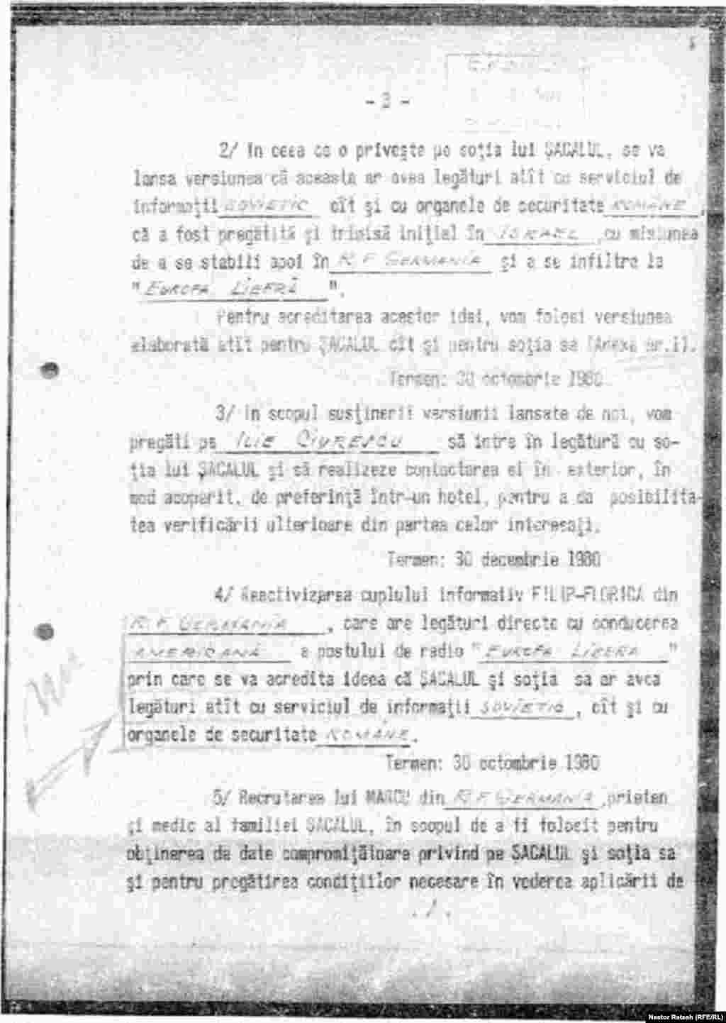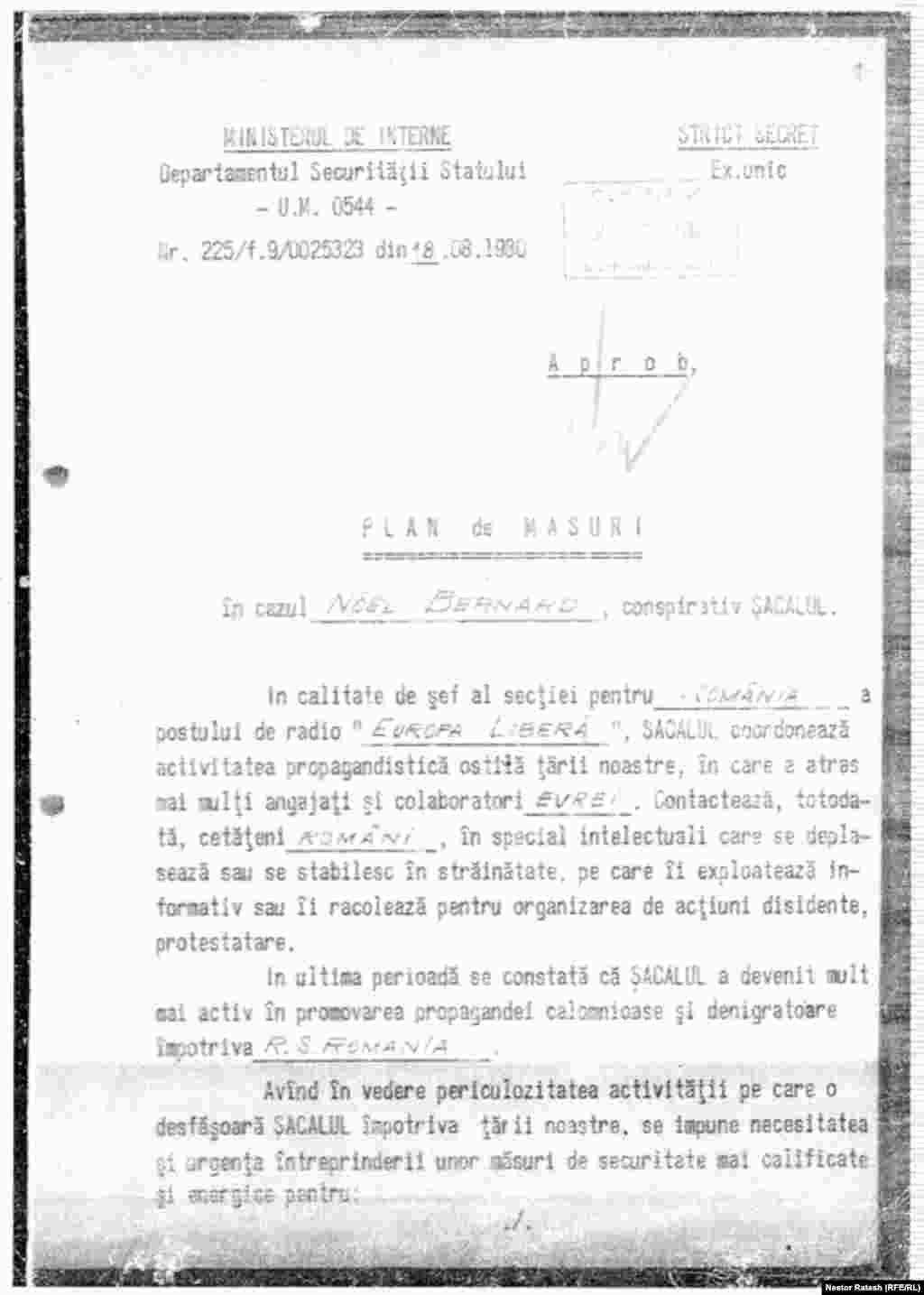 Planul de măsuri elaborat de Securitate în cazul Noël Bernard în august 1980