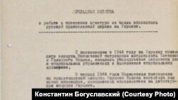 Noi informații cu privire la colaborarea preoților cu NKVD-ul sovietic ies la iveală odată cu deschiderea arhivelor Serviciului de securitate al Ucrainei. O copie a unui document a fost transmisă de cercetătorul ucrainean Konstantin Boduslavski serviciului rusesc al postului nostru de radio, Radio Svoboda.