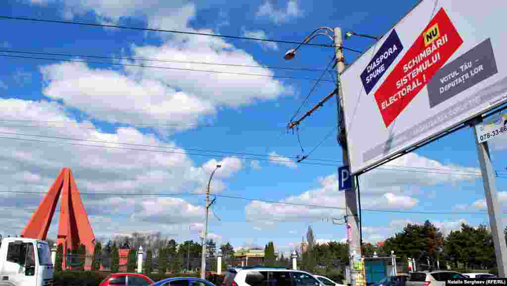 După publicarea proiectului de lege pentru schimbarea sistemului electoral, în Chișinău au apărut mai multe panouri publicitare pro și contra votului uninominal. Panourile „pro” sunt atribuite Partidului Democrat care a înaintat inițiativa, iar cele două „contra” au fost instalate din banii unor lideri din diasporă.